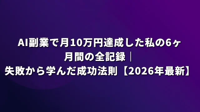 AIツール活用 AI副業で月10万円達成した私の6ヶ月間の全記録|失敗から学んだ成功法則【2026年最新】 [TRUNCATED] AI副業で月10万円を達成するまでの6ヶ月間の体験記を公開。月1万→5万→10万の各段階での心理的・実装的な違い、失敗パターンと脱出策、実際のクライアント獲得戦略まで包み隠さず記録。 2026.04.03 AIツール活用AI副業
